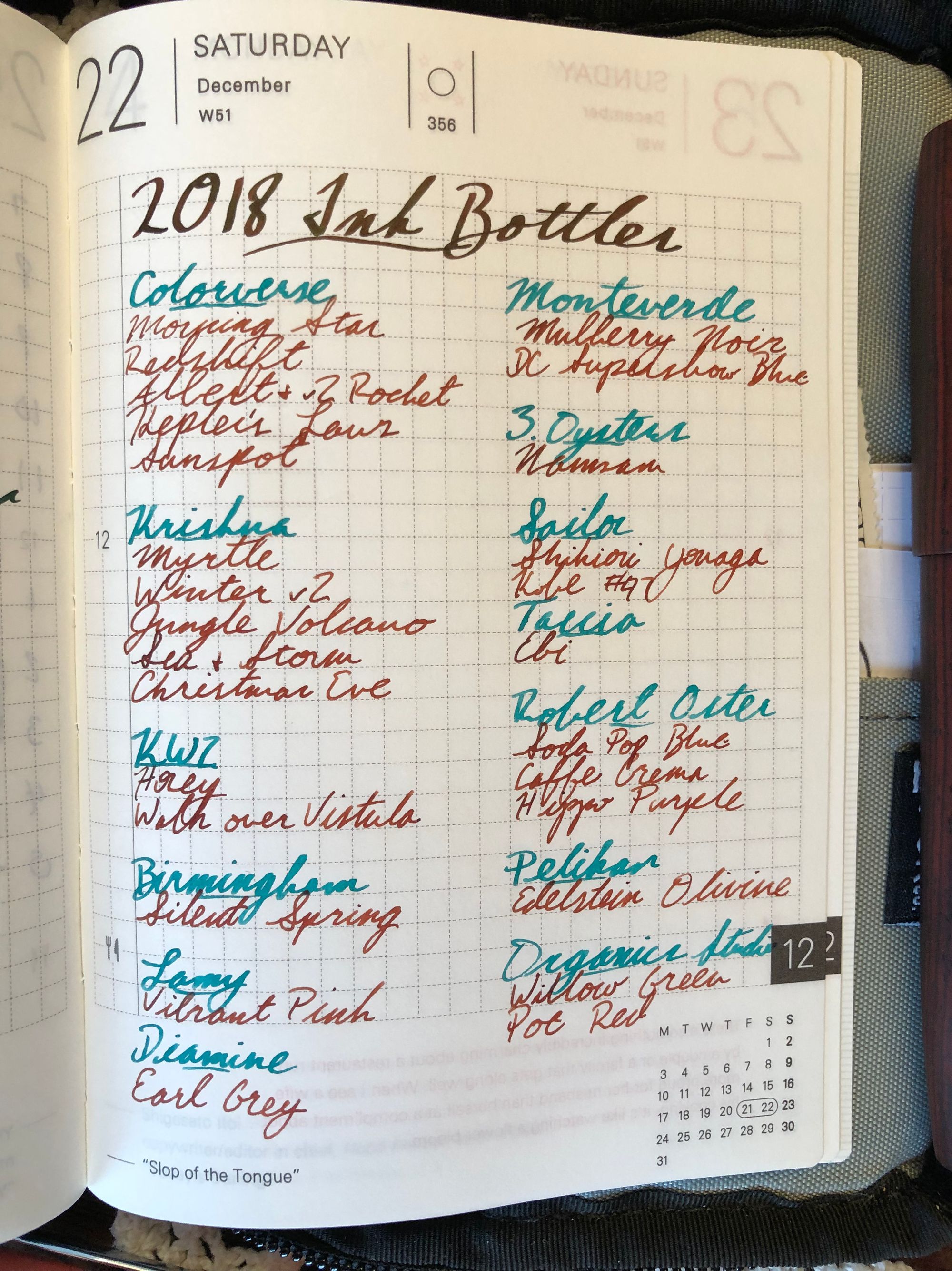 Nib wise, I’m all over the board. I didn’t purchase any fine nibs this year, but branched out into a few different stubs. My handwriting really lends itself well to stubbed nibs, and there’s a lot to explore in that space.