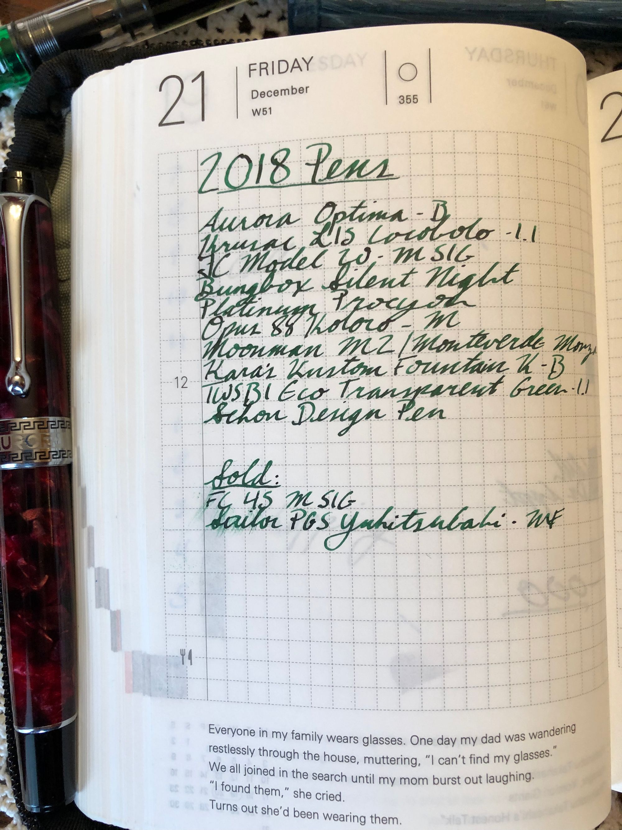 I don’t think I have a specific buying plan for 2019. There’s a chance that I might be able to go to Japan at some point in the new year, which would certainly necessitate a bit of a strategy. It may also be time to look at something in the more “grail pen” category, something like a Nakaya or a nice Omas Paragon. But otherwise, I’m really satisfied with where my collection is at the end of this year, and how it grew in 2018. I hit a couple good pen shows, I made some purchases that I’m really happy with, and I got to spend time playing with some of the things that really make me happy. And isn’t that what it’s all about?