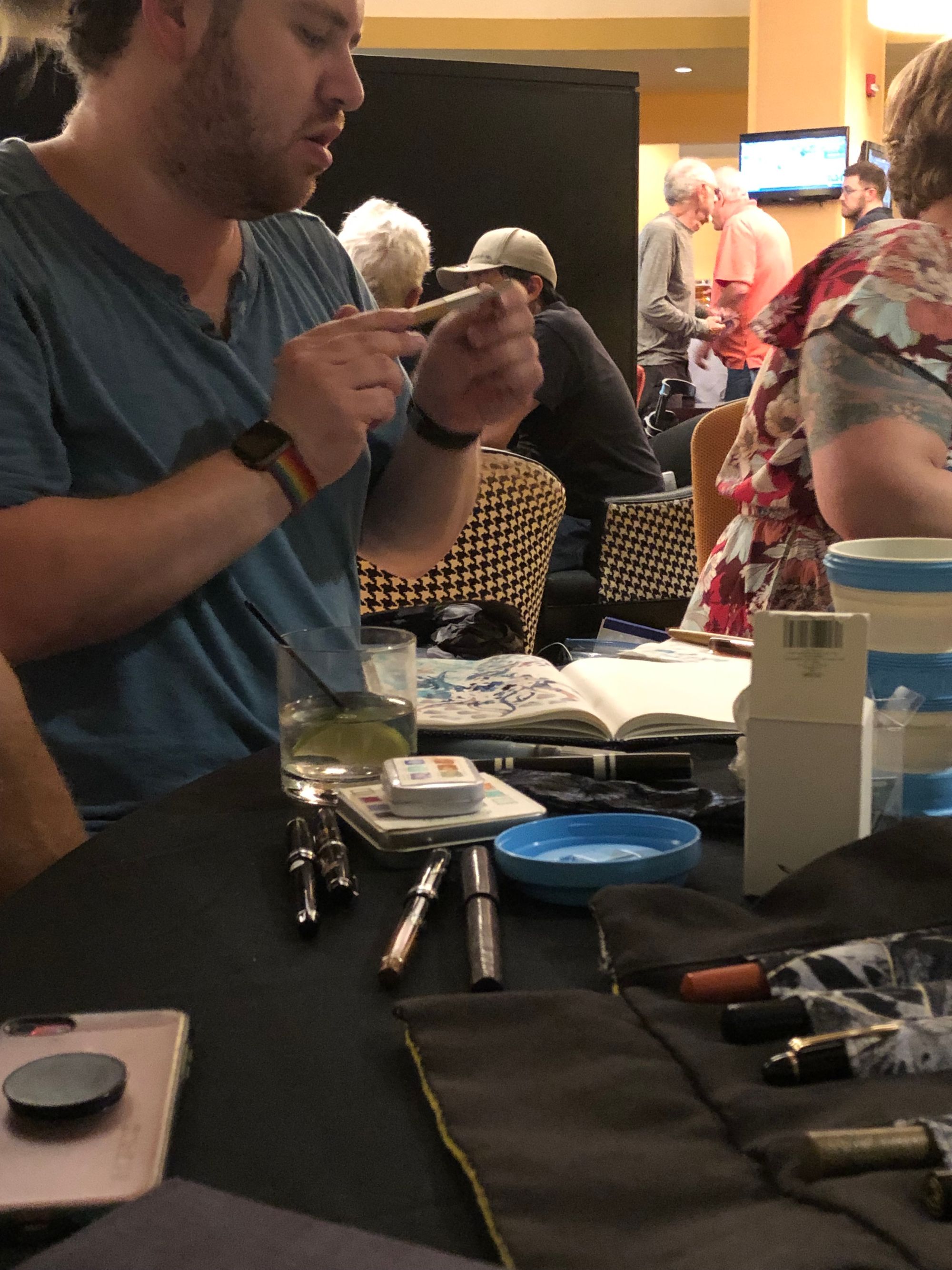 • Bar time: Awesome, as always. It felt like the Falls Church Marriott has finally realized that they can kind of leave us to do our own thing, and that was really nice. Pens were exchanged, inks were shared, and good times were had by all. Favorite moment? Watching Dan ink up Charlotte’s new Musubi so that she didn’t have that “new notebook anxiety”. Brilliant on a number of levels.